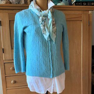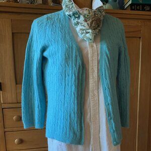 This is a soft wool buttonfront cardigan from Espirit. V-neck with pretty oval buttons. Long sleeves.