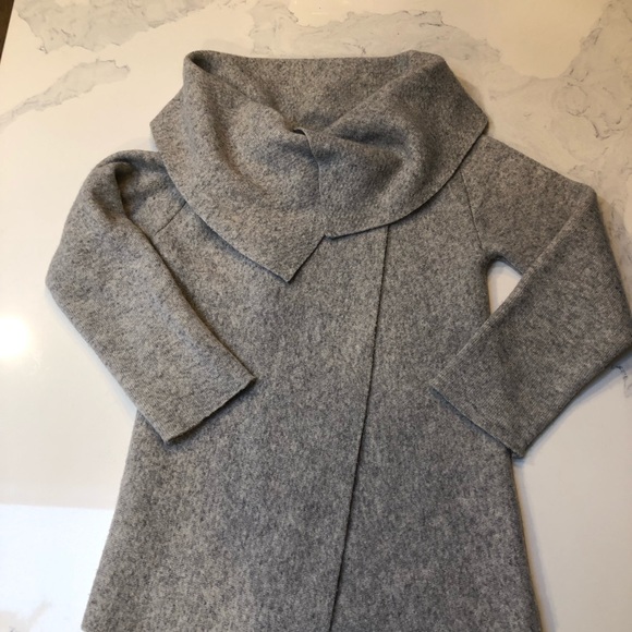 Wool sweater that looks great belted!! Add jeans and boots and you are ready to go! Wear open or button at the shoulder.
