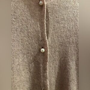 Wool Cashmere Blend Asymmetrical Poncho Wrap Lightweight Knit Layering Top with pearl button detailing by CobbleStone Made in Italy