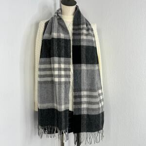 Lambs Wool Cashmere Blend Scarf Plaid Fringe Gray White and Black, The Royal Mile Scarf Bar Dark Academia, Good Condition