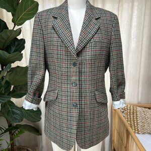Wool Cashmere Tweed Plaid Blazer Jacket Heritage Classic Donegal Ireland, M