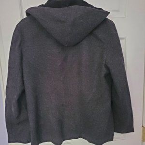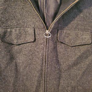 Very warm Women's wool coat with hood, breast pockets and fully lined. Measures 26" long, 21" pit to pit and 24" sleeves. Does have slight pilling but has a lot of life left. The zipper tab is broken but does work.