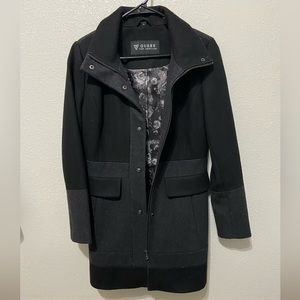 Black and Grey Wool Coat. Size M- fits true to size. Worn a handful of times- in very good condition. Slight pilling on the collar as shown in close up image.