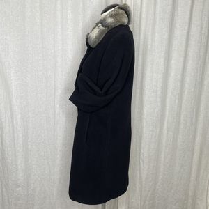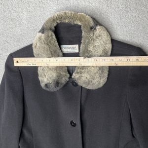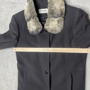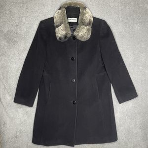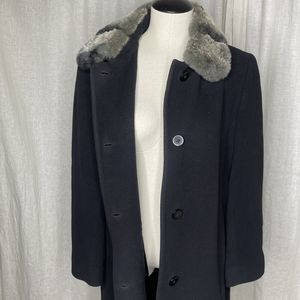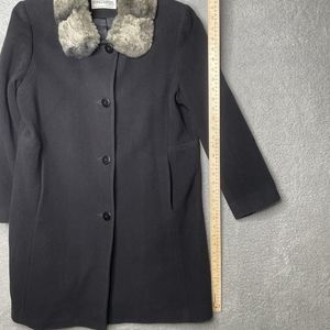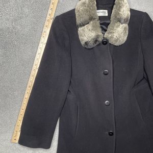 Wool Coat Womens 8 Black Lambswool Blend Fur Collar Forecaster of Boston Topcoat