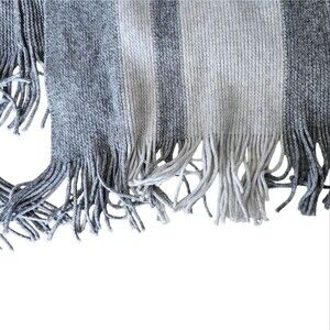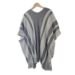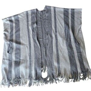 Wool Cotton Cashmere Blend Gray Striped Open Front Long Line Wrap Cozy Boho