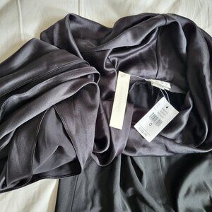 Wool Dress Wide Leg Pant Black TAG on, 93% wool, 7% Spandex, attached high waist silk belt