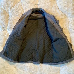This a bran new W/o tags jacket and has never been worn before. It has a sleek modern design and has a wool exterior fabric. The inside is a black bleated design and would be a great coat to wear out during Fall/Winter.