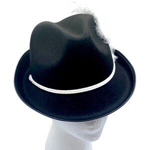 This J Hats Wool Felt Fedora Hat is a striking addition to any costume or cosplay outfit. It's black with a white feather, suitable for stage, theatre, and other events. Size is adult M.