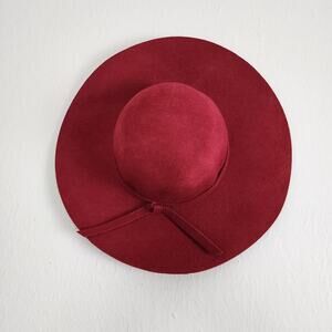 DARK RED Wool Floppy Fedora Hat Wide Brim Bowler Retro