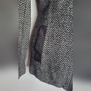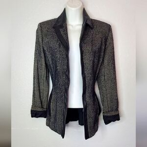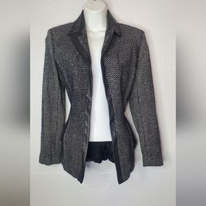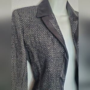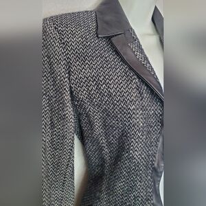 Wool & Genuine Leather Black & Gray Modern Blazer Jacket Notched