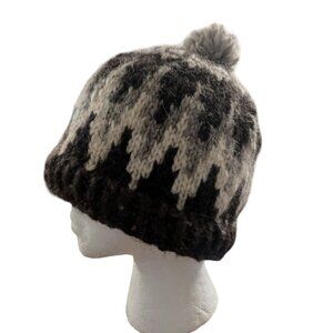 Wool Hand Knit Beanie Hat Cap Unisex Large Pom Pom Winter Snow Ski Boho