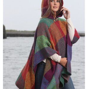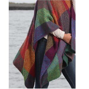 Wool Handwoven Colorful Cape Sweater Poncho Cloak John Branigan Boho Herringbone