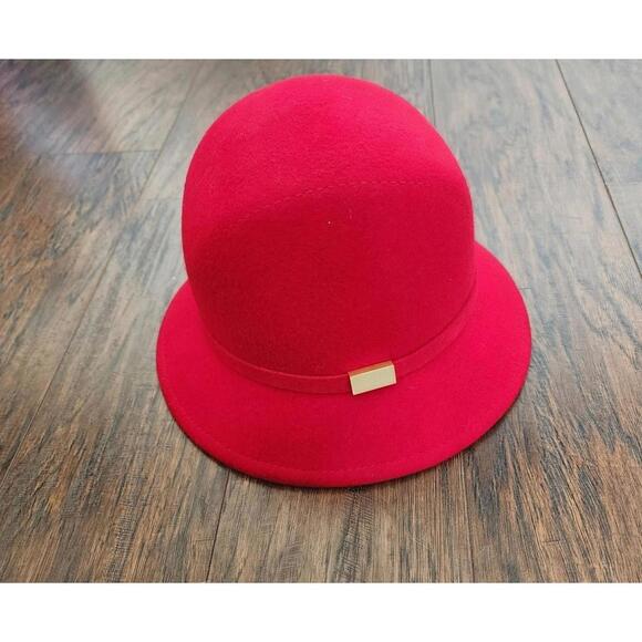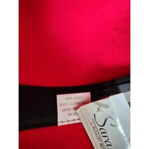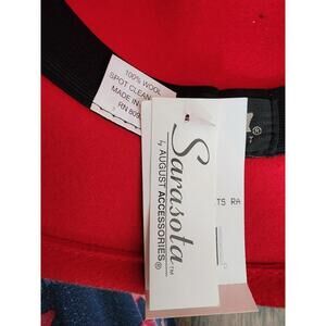 New with tags women's vintage style wool hat. Bright red with gold buckle detail. Brand is Sarasota by August accessories. Comes from a smoke and pet free home. Tags- wool hat, winter hat, fancy hat, vintage hat, bucket hat, red hat, 1930's style hat