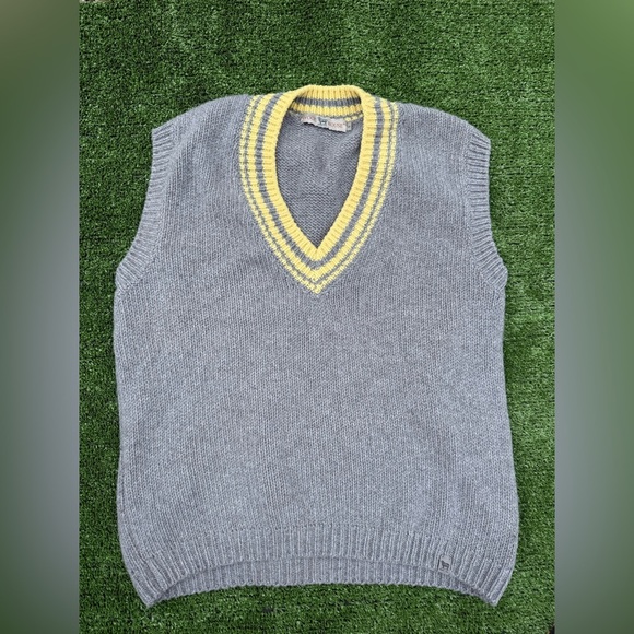 Wool House Gray and Yellow Men's Sweater Vest, Cashmere and Merino Wool size L