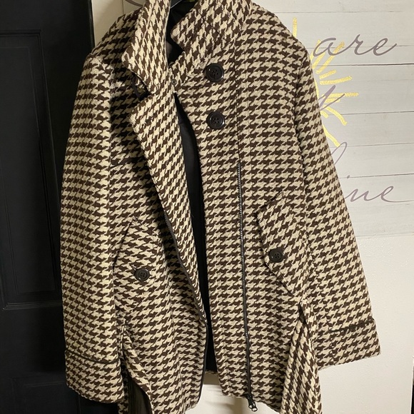 Gorgeous Wool Jacket! Beautiful unique brown and white pattern with belt by Soia&Kyo