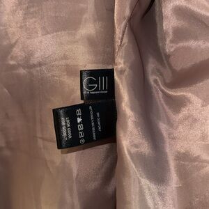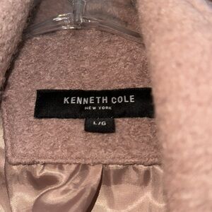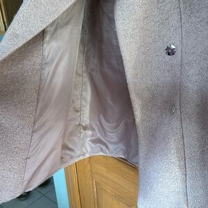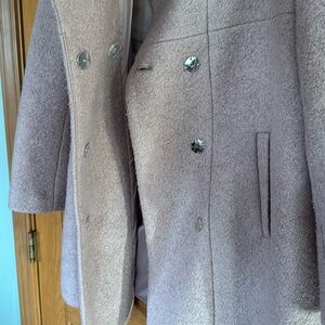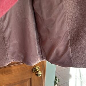 Pink, hidden button, two front pockets, fully lined, no tears, worn twice, great condition, warm, hits at mid thigh