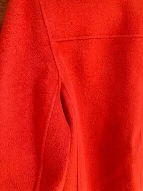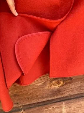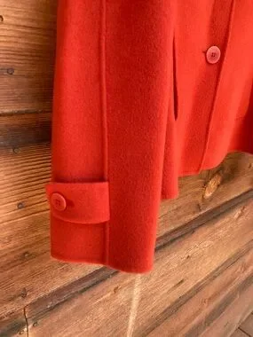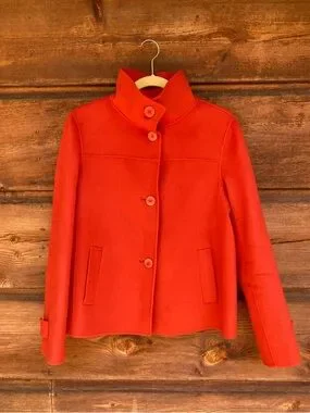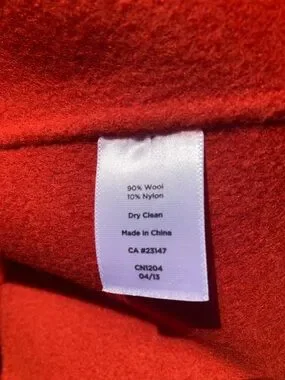 Unlined button-down coat/jacket with pockets. Wool and nylon. Feels similar to felt. No brand/size tag.