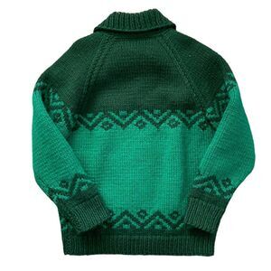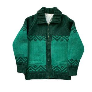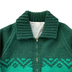 Wool Knit Zip Up Cowichan Sweater Jacket Green Small - Unisex