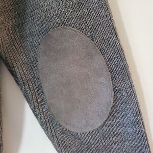 Excellent clean condition. Elevate your sporty look with this Woolovers men's sweater. Crafted from high-quality wool, this pullover features elbow and shoulder patches, a 1/4 zip, and long sleeves. The gray color and sports theme make it perfect for any casual occasion.