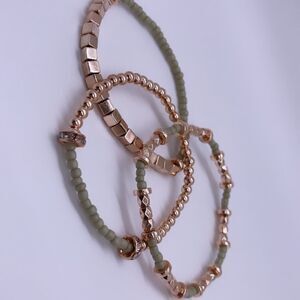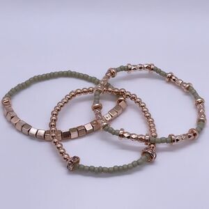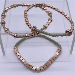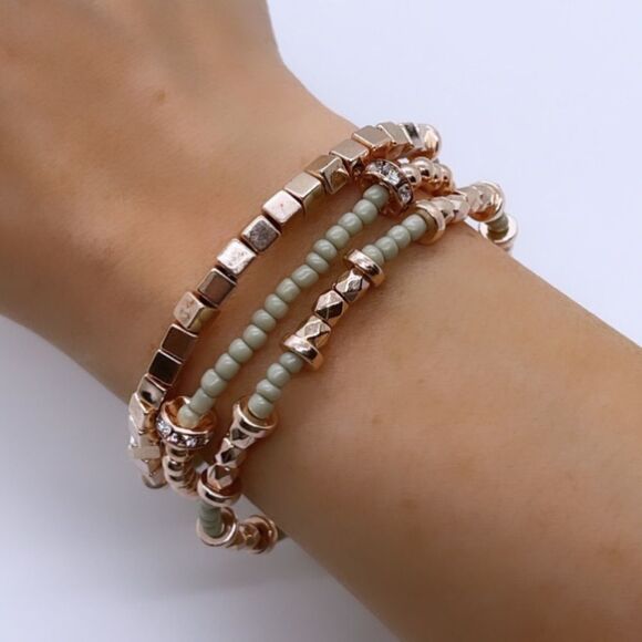(3) Elegantly Crafted Rose Gold & Slate Beaded Bracelets.