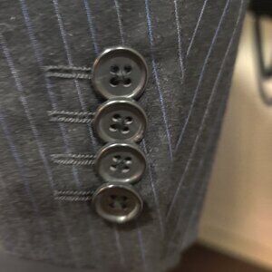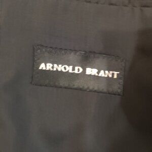 100% wool Arnold Brant suit. Does not have tags, but it has never been worn. Elegant, pin stripe pattern. From Saks Fifth Ave. Made in Canada