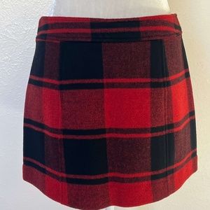 Adorable wool mini skirt with button trim on front and a zip-up back. Fully lined.