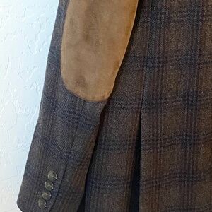 Wool Plaid Professor Blazer 46L Elbow Patch Heritage Preppy Academia Jacket