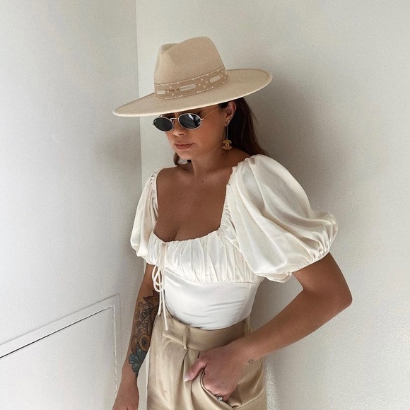 Stylish wool rancher hat from Shop Starlow. It’s a neutral color and can go with many outfits! Worn once
