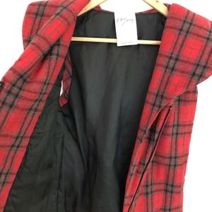 Wool Red Plaid Quilted Sleeveless Hood Belted Jacket XS by Chulo Pony Gretchen