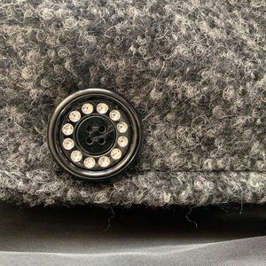 Wool Rhinestone Button Coat with Ruffle on Bottom, Size Medium