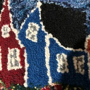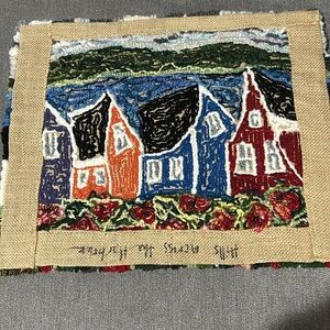Hand hooked wool rug. Seascape. Design by Deanna Fitzgerald. 18.5 by 15 inches.