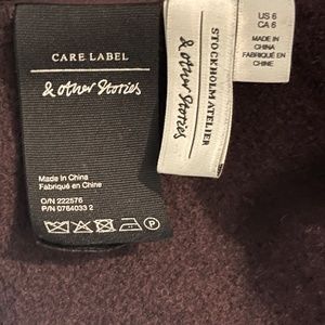Originally purchased for $135. Only worn a few times, in great condition. Size 6, oversized fit. Tag says burgundy, its a bit more purple in person.