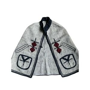 Wool Shoulder Poncho Cape Arm Slits Button Vintage Wool Hand Made Guatemala Youth Girl