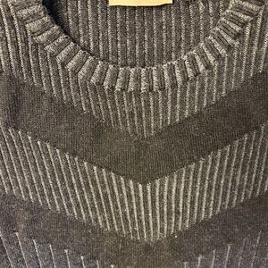 Stay warm and stylish with this classic black/ charcoal sweater. 85% virgin wool . Made in Italy .
