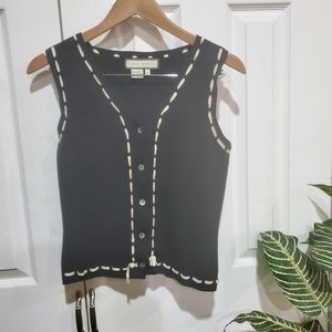 Susan Martin wool vest. I love the details in this piece. From the fabric to the lace bow details all around. Pre washed and ready to wear.