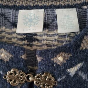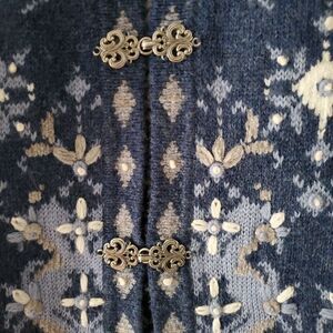 Wool Winter Silver Filigree Hook Closure Cardigan Size PM