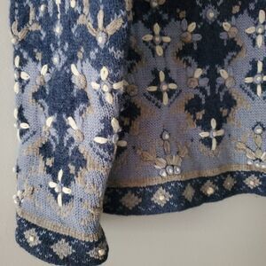 Blue knit with cream accents