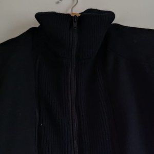 Knitted rib middle piece with turtle neck can be zipped off and worn without.