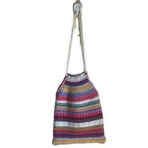 Preloved, in good condition, beautiful wool knit multi color shoulder handbag. Rope straps, unique piece. Please let me know if you have any additional questions!