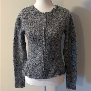 Wool and Rabbit Hair Blend Knit Zip up Cardigan with Brown Elbow Patches. Sz Sm