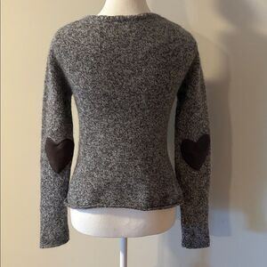 Cozy gray knit cardigan featuring stylish brown heart elbow patches. Perfect for layering. I’m not sure the brand, please see tag. It also measures as a small. Super cute patches on the elbows! In great pre owned condition!