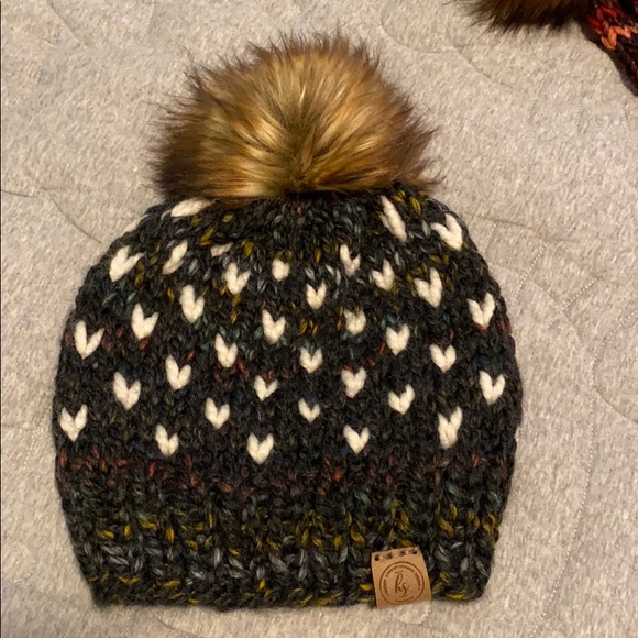 Very cute beanie with faux fur pom. Charcoal with rainbow flecks. Very stretchy. Measures 8” flat at bottom, 8.5” tall.