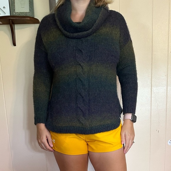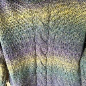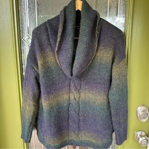Wool blend Medium Shawl Collar Cable Knit Pullover Sweater Multicolor Ombre Cozy