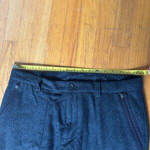 charcoal grey, wool blend, tapered fit, zipperless, classic style, tailored, structured, versatile, mid-rise, clean lines