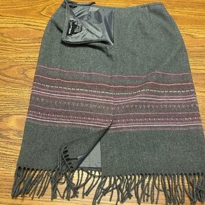 Wool blend fringed gray skirt with pink stitching, size 12P