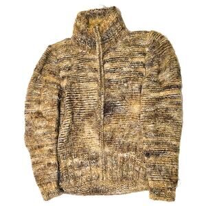 Women’s browns & grays size S marled fuzzy Wool blend zippered sweater cardigan