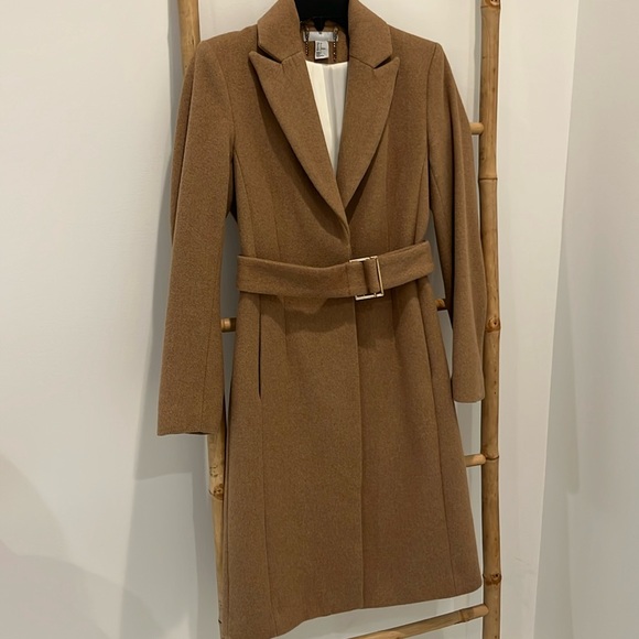 Wool blend very warm jacket can be worn belted. Dry cleaned only. Pet free smoke free home.