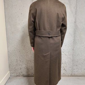 Wool dress coat, dark army green, belted back. Size 6. Fully lined.