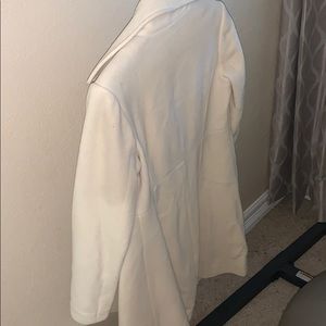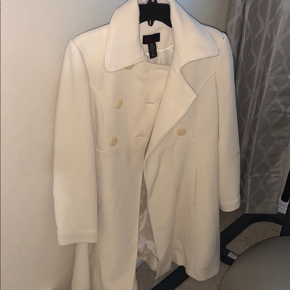 Button detail 70%wool cream color. Beautiful coat comes just past knee I’m 5”9