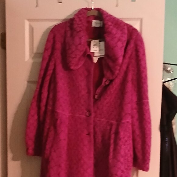 Brand new Magenta wool Stizzoli coat with packets on the side and sequin buttons. US size 20W made in Italy